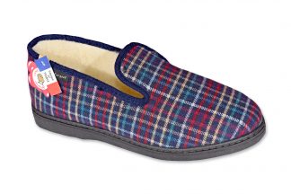 Chaussons “Fargeot” – homme – marine – « modèle Gadget » – semelles caoutchouc antidérapantes – intérieur fourré laine