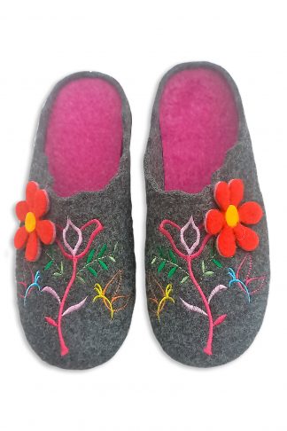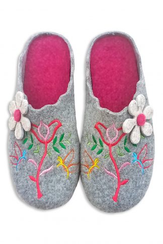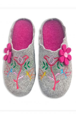 Mules fantaisie – femme – modèle “Liris gris” – Intérieur tissu – Semelles caoutchouc antidérapantes