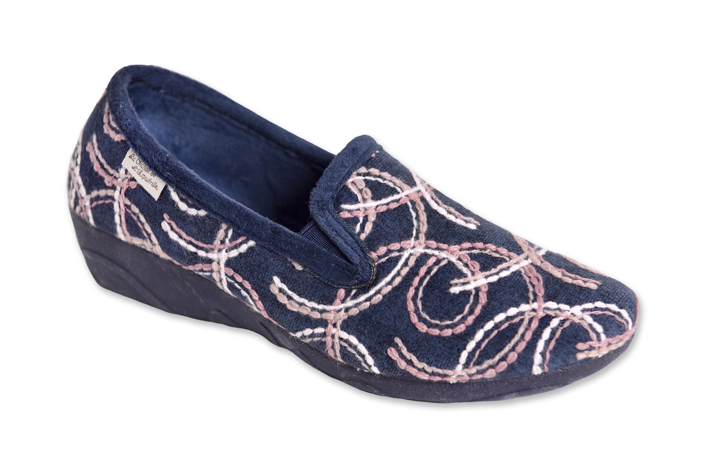 Chaussons avec talon “La Maison de l’Espadrille” – femme – marine – “modèle 6946” – semelles caoutchouc antidérapantes – intérieur velours – TAILLES 36 – 37 – 38 – 39 – 40 – 41