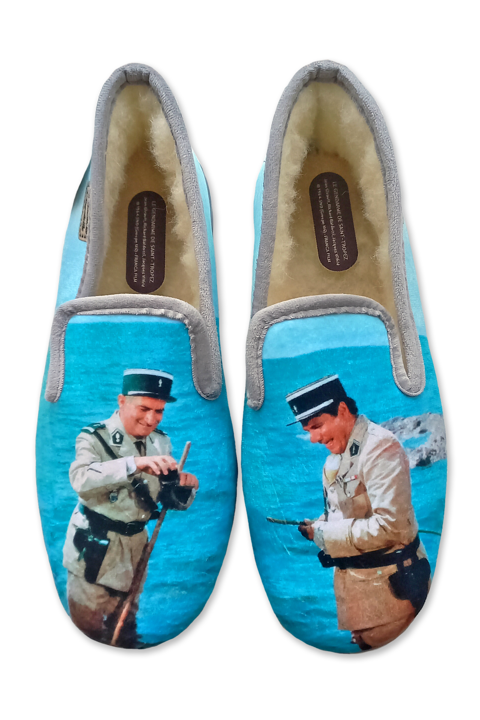 Chaussons cinéma “La Maison de l’Espadrille” – homme – modèle “Les Gendarmes de Saint-Tropez 7704” – intérieur fourré laine – semelles caoutchouc antidérapantes – TAILLES 41 – 42 – 43 – 44 – 45