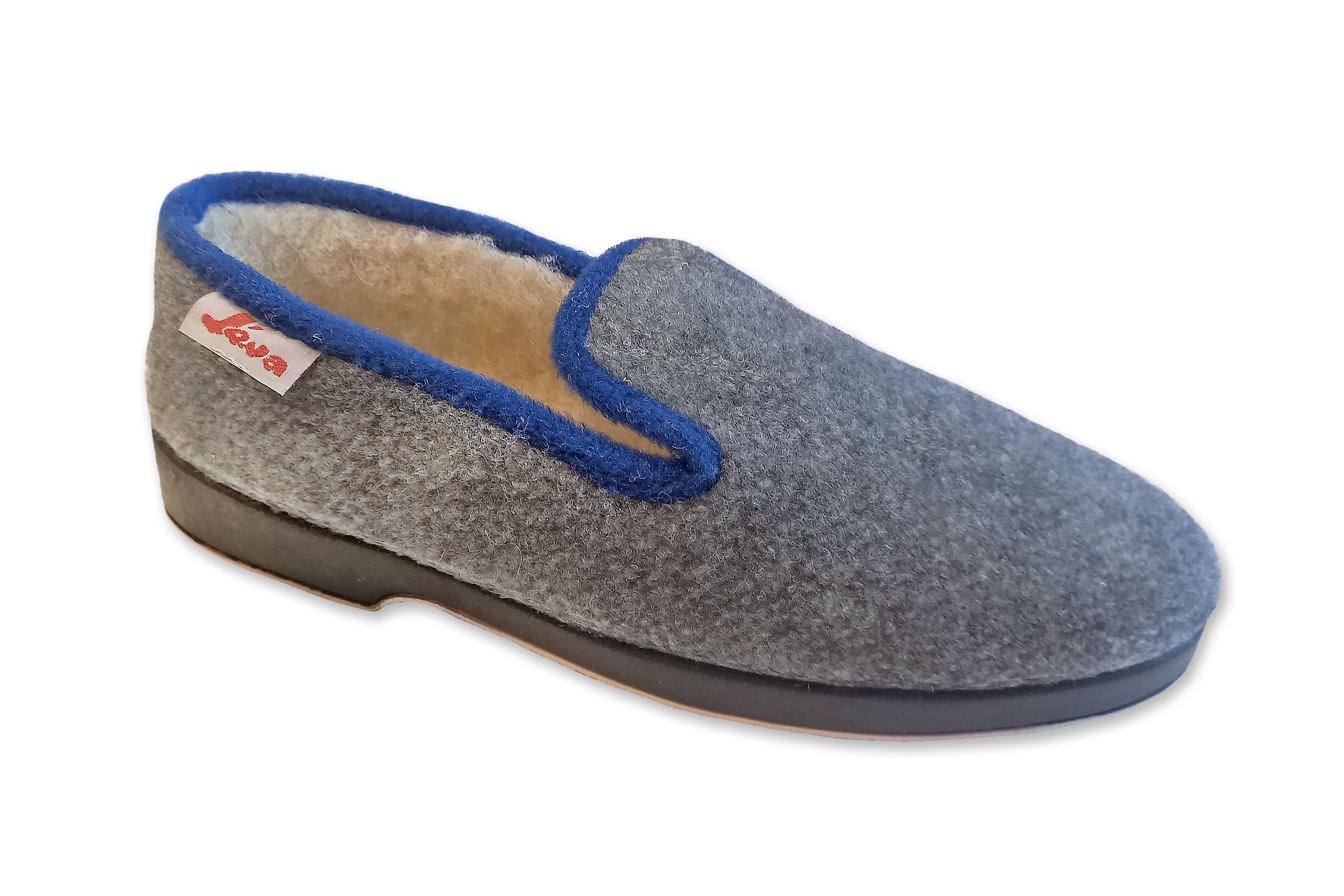 Chaussons JEVA UNIS – homme – Modèle Sabel gris clair – intérieur fourré laine – semelles caoutchouc antidérapantes